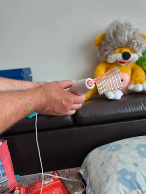 Use the comb electrode on a clean, slightly oiled scalp. Brush in the hair growth direction for best follicle stimulation and reduced itch.